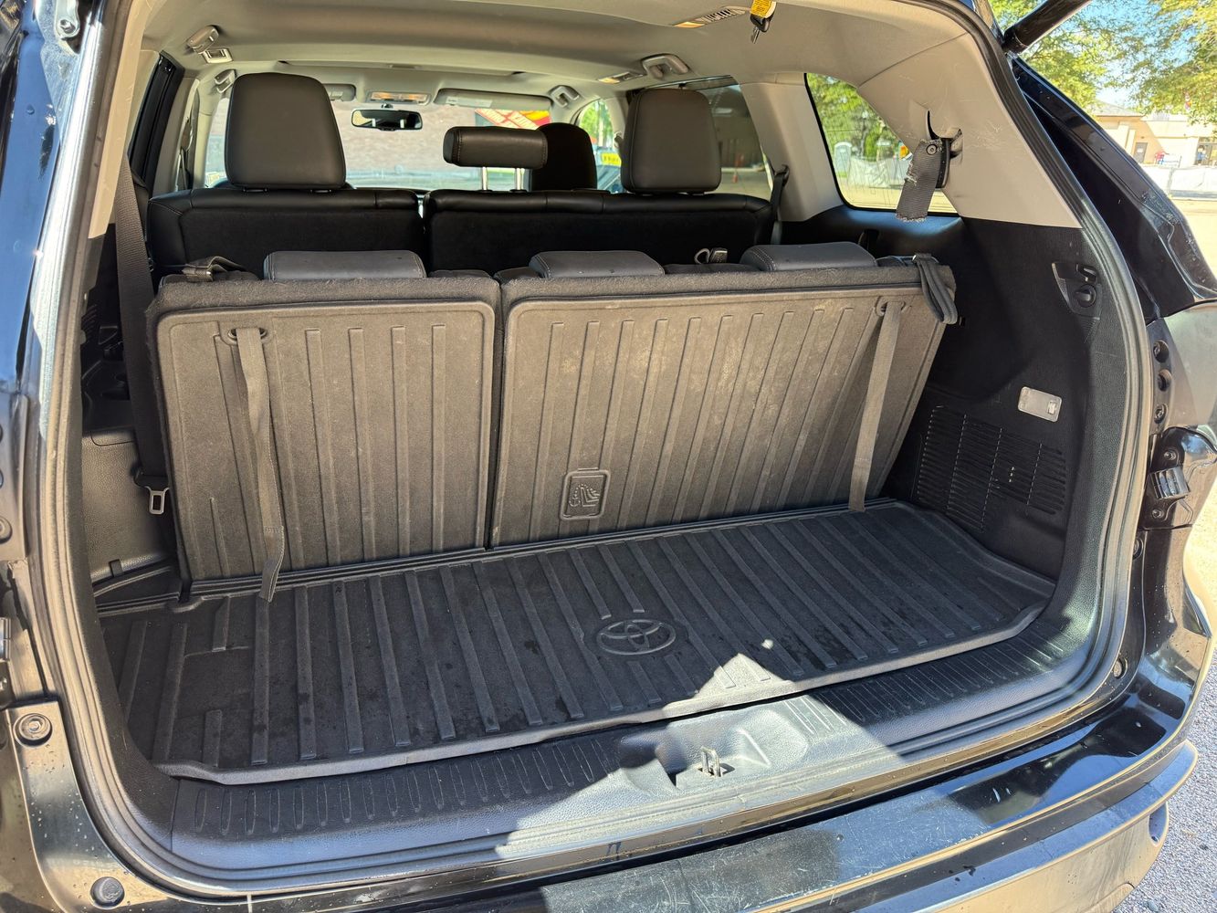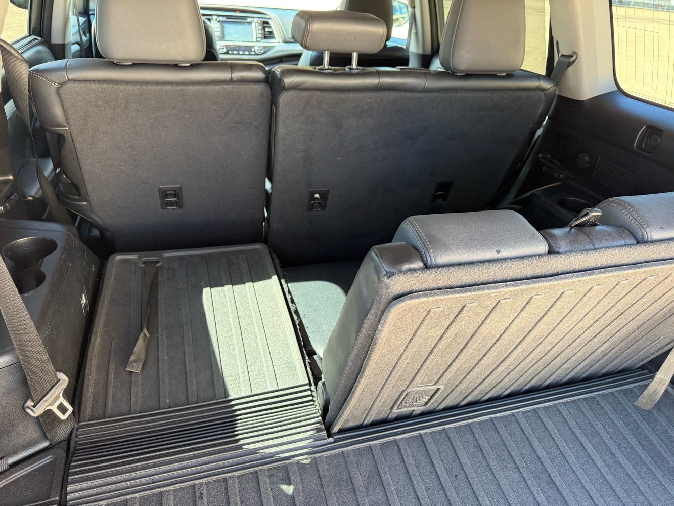 Third-row seatback upholstery: Carpet third-row seatback upholstery